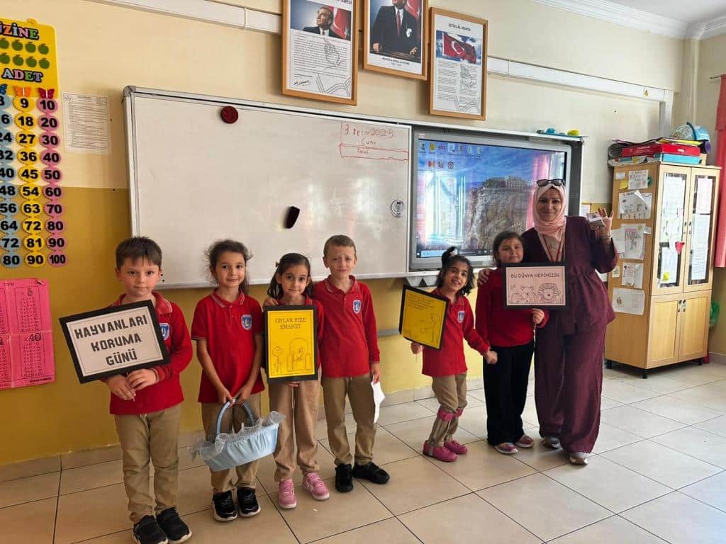 2/A sınıfı öğrencileri, öğretmenleri Seda KAYA YILMAZ rehberliğinde Hayvanları Koruma Günü kapsamında hazırladıkları kedi mamalarını okul idaremizi ve sınıflarımızı ziyaret ederek paylaştı. Bu etkinlik sayesinde öğrencilerimiz, hayvan sevgisini ve paylaşmanın önemini bir kez daha pekiştirdiler.